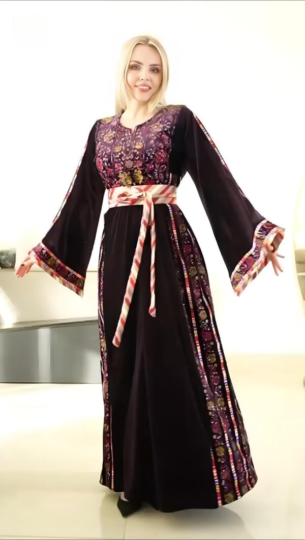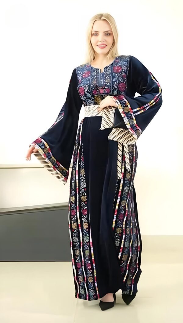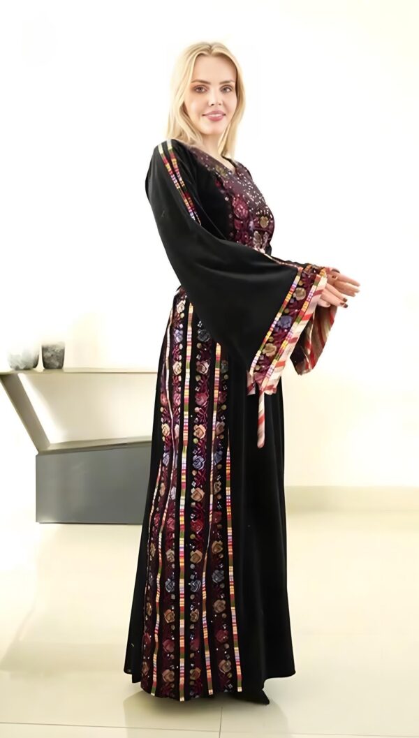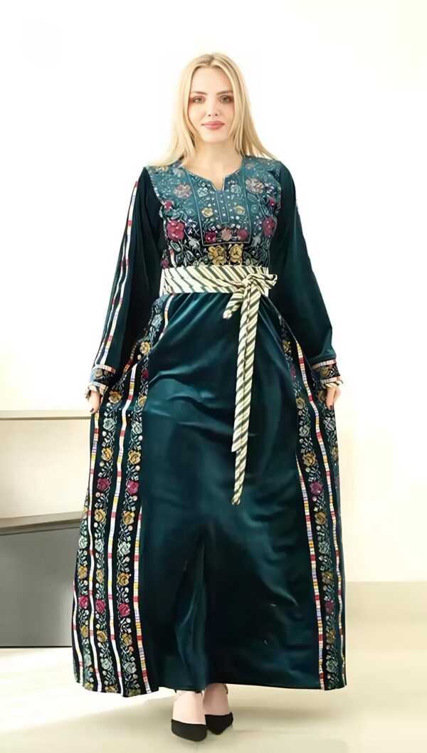 ثوب الزهور المخملية ليس مجرد لباس، بل قطعة فنية تحكي عن الأصالة، الفخامة، والذوق الرفيع