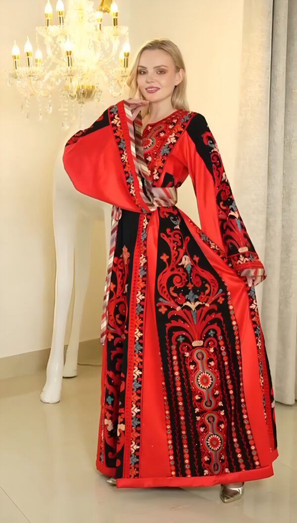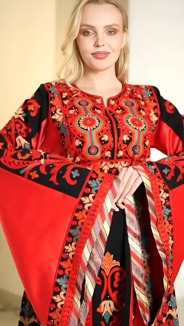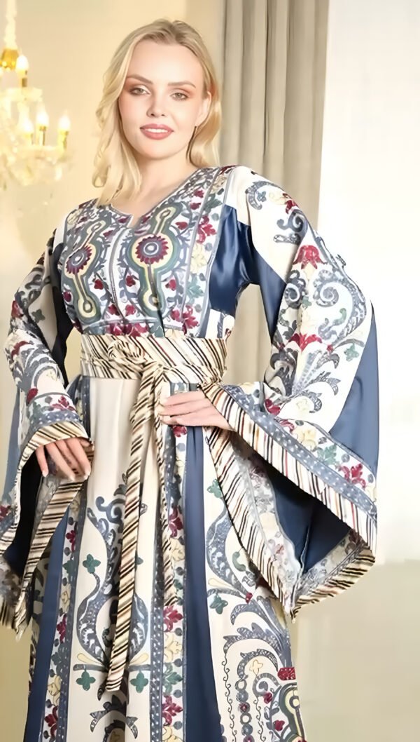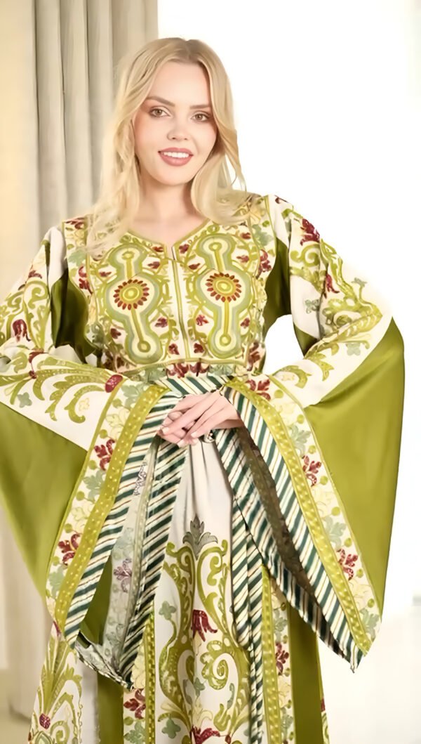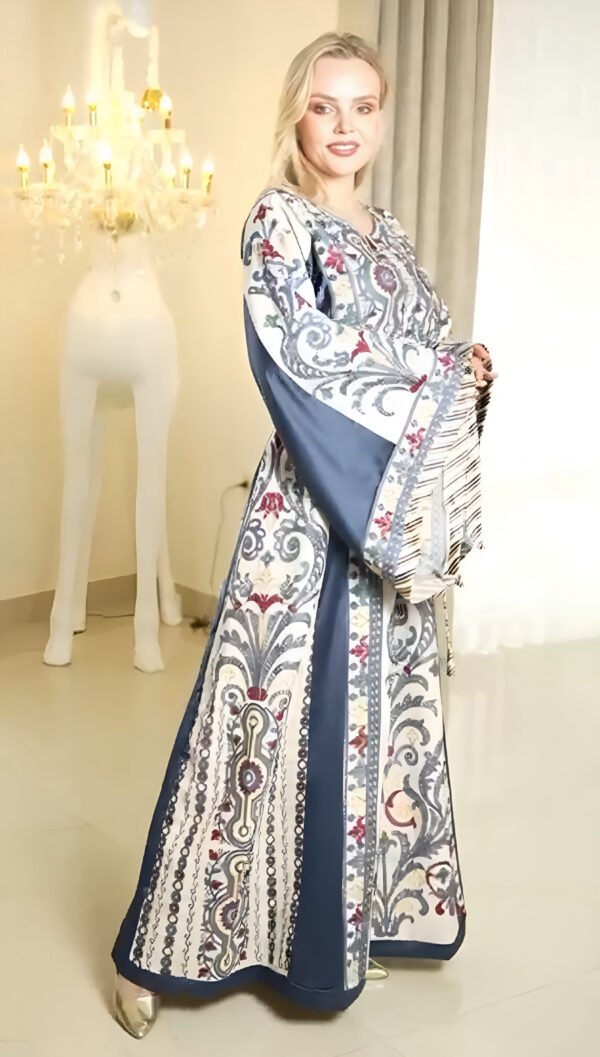 صُمم بعناية من قماش فاخر عالي الجودة ينساب بنعومة على القوام، ليمنحك راحة وأناقة في آنٍ واحد. تفاصيله الدقيقة وتطريزاته الراقية تضيف لمسة فخامة متوازنة دون مبالغة، ليكون خيارك المثالي إذا كنتِ تبحثين عن التميّز بإطلالة راقية.