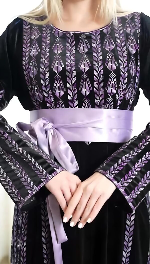 تتناغم تفاصيل التصميم بدقة عالية، بدءًا من القصّة الانسيابية التي تمنح راحة وأناقة في آنٍ واحد، مرورًا بالتفاصيل الدقيقة في الأكمام والحواف، وصولًا إلى الخياطة المتقنة التي تعكس جودة الصناعة واهتمامنا بأدق التفاصيل.